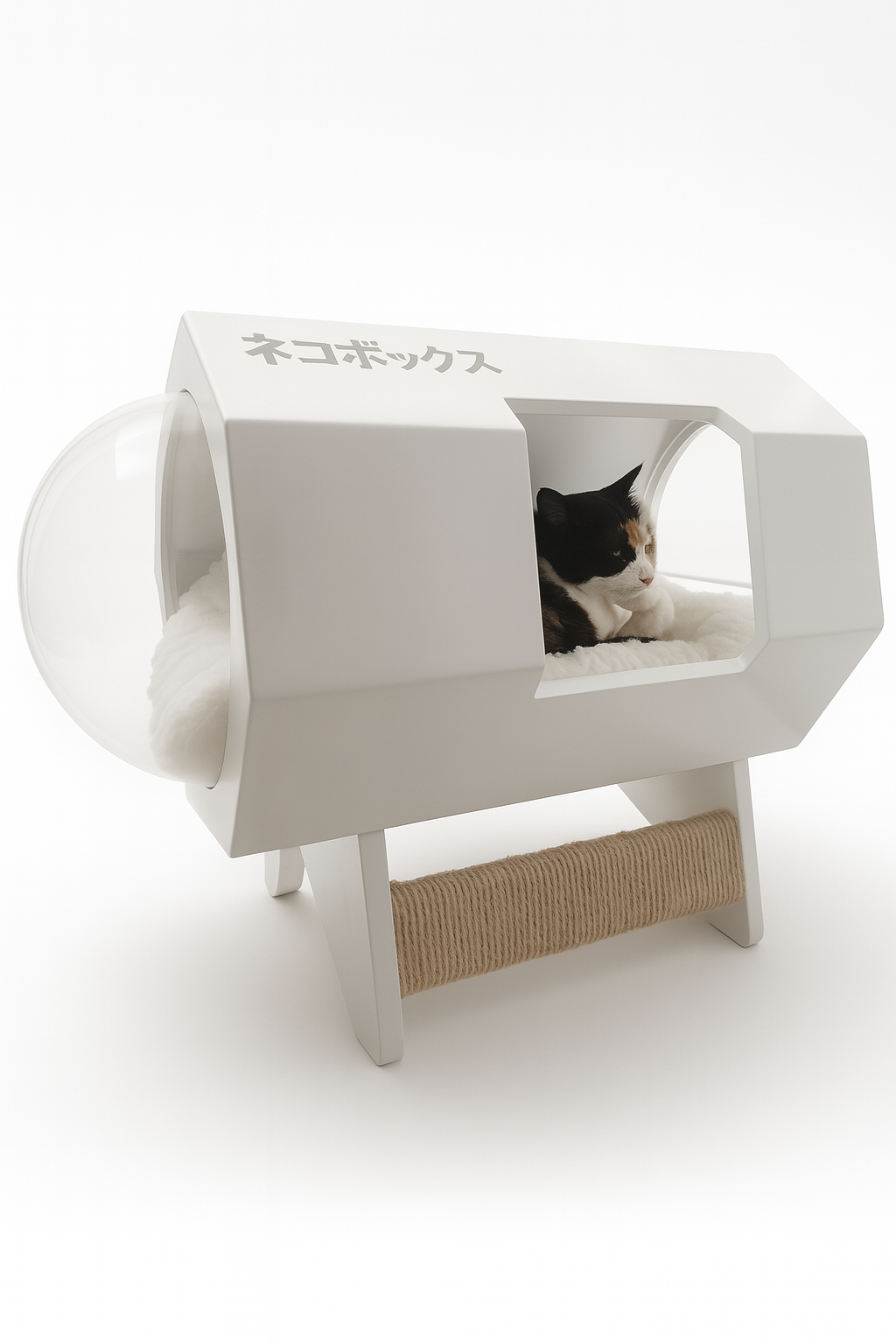 Diseñada cuidadosamente para integrarse en espacios contemporáneos, la NekoBox ofrece a los gatos un refugio seguro y acogedor, sin sacrificar el estilo del hogar. Su estructura octagonal aporta una forma visualmente atractiva y ergonómicamente pensada para el descanso natural del felino, mientras que sus domos acrílicos transparentes permiten al gato observar su entorno desde una posición cómoda, sin sentirse expuesto.